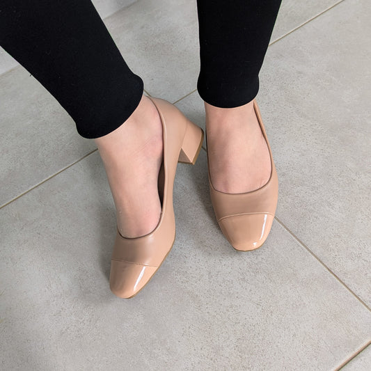Escarpin - Beige Clair Mat / Noir Glacé